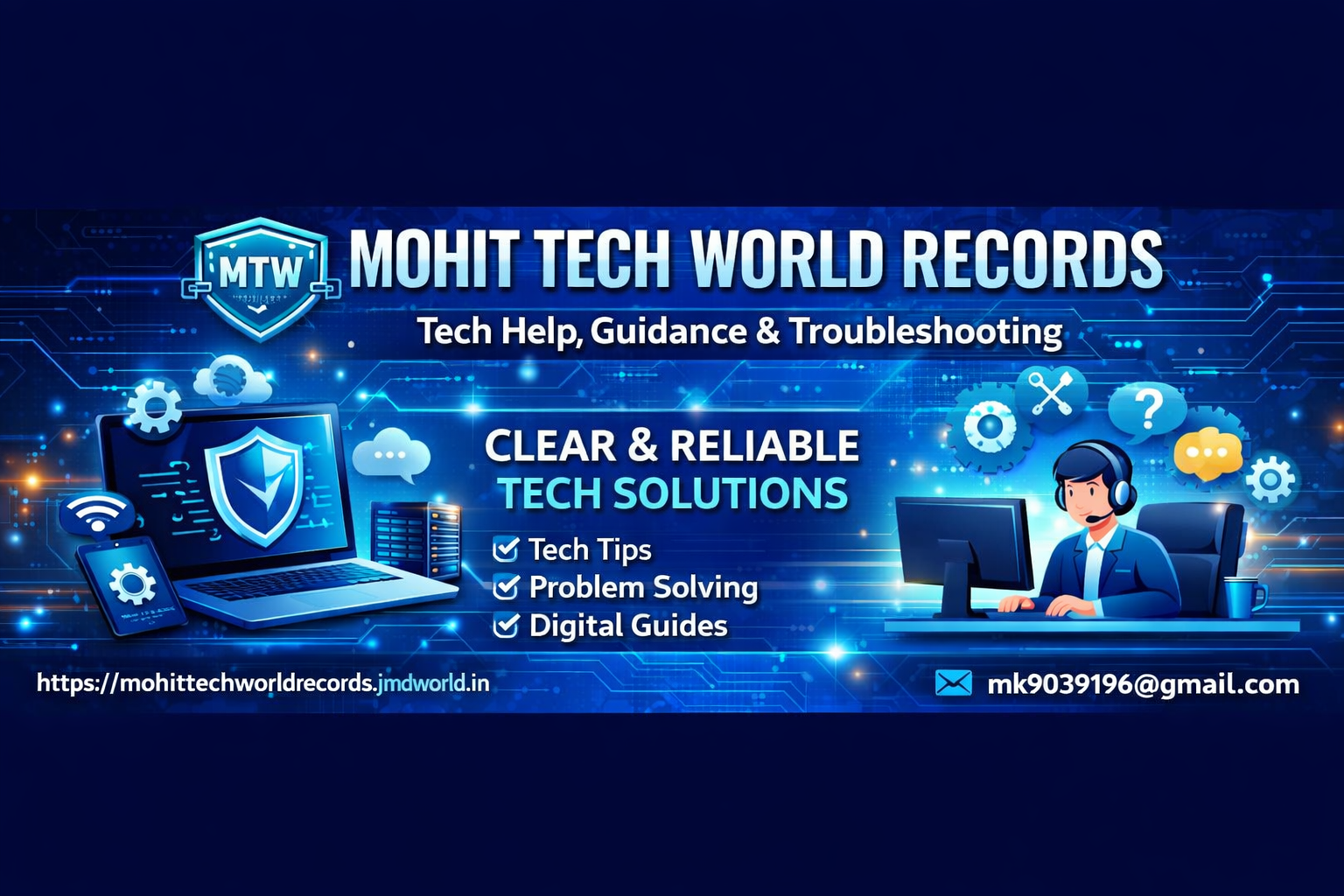 Mohit Tech World Records is a technology-focused platform dedicated to providing reliable tech solutions, guidance, and support for users who want to learn, solve problems, and stay updated in the digital world. Our goal is to simplify technology and make it easy to understand, accessible, and useful for everyone.